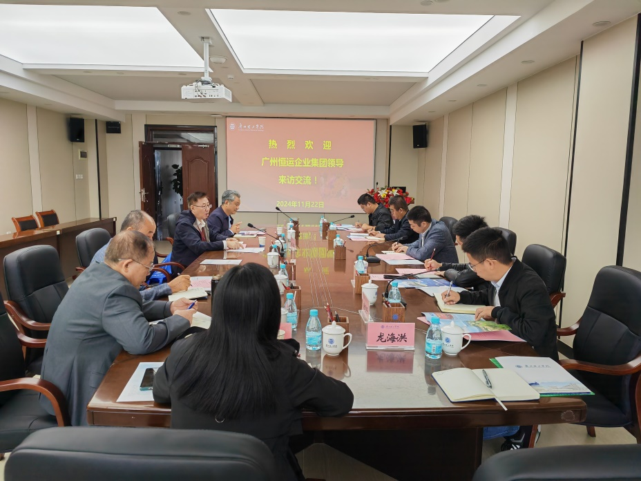 为深化校企合作,对接企业人才需求,推动企业实践基地建设,2024年11月22日上午,广州恒运企业集团王艳军副总经理一行来我校洽谈校企合作,随行人员包括能源研究院季峰、凤鹏举、蔡伦、唐富强等高级研究员与管理人员。广州理工学院张世梅副校长、产教融合部石凤喜部长、KY开元集团李玉忠院长、唐志列副院长、孟遂民副院长、朱亚峰副院长等领导与龙海洪老师参加交流。