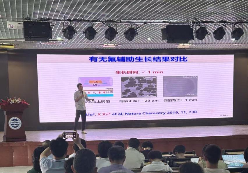 报告中,徐教授首先系统介绍了二维材料的基本概念与研究背景。他指出,二维材料是指电子仅可在两个维度上自由运动的纳米材料,因其载流子被限制在二维平面内,展现出许多不同于块体材料的奇特物理性质,自发现以来便迅速成为凝聚态物理和材料科学多个方向的研究热点。近年来,二维材料更被视为下一代电子器件应用的核心候选材料之一。徐教授特别强调,回顾半导体产业的发展历程,能否掌握大尺寸、高质量单晶的制备技术,是能否占据未来电子芯片领域制空权的关键。正因如此,大尺寸单晶二维材料的可控制备已成为当前凝聚态物理与材料物理亟待攻克的核心科学问题之一。
