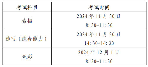 广东省2025年普通高校招生美术与设计类专业省统考将于2024年11月30日至12月1日进行,相关科目考试时间如下: