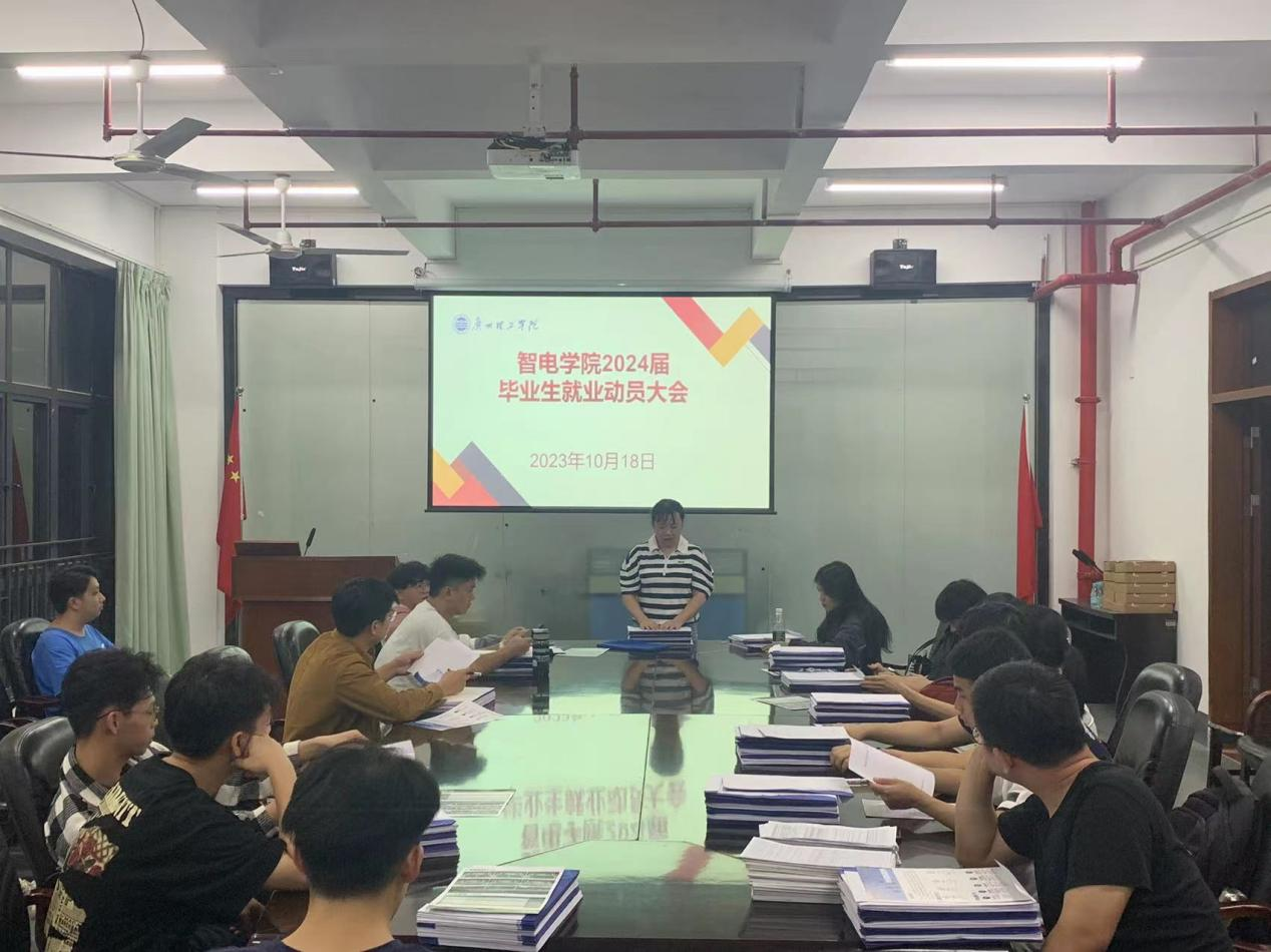 为了进一步提升毕业生求职能力,引导毕业生树立正确的就业观念,切实做好毕业生就业指导工作,智电学院于10月18日下午,召开2024届毕业生就业动员大会。会议由肖静园老师主持,2024届全体班长参加会议。