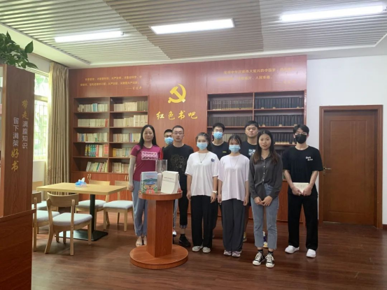 在党校办公室黄主任的带领下,我们第一站参观的是党校党建主题之一的“红色书吧”。“红色书吧”作为党史学习教育“新阵地”,因地制宜用活红色资源,陈列2000余册红色书籍供大家学习。在“红色书吧”,实践队员们认真阅读学习,重温了党的奋斗历程。
