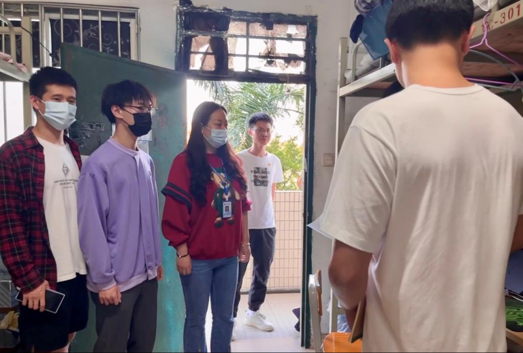 在检查过程中,辅导员老师和学生党员们对宿舍的用电安全、消防隐患等进行了逐间排查,反复叮嘱同学们要严格遵守学校住宿管理规定,注意安全用电,严禁使用违规电器。随后,辅导员老师提醒同学们,应按时进行清洁消毒,打开门窗通风散气,创建良好的宿舍环境。