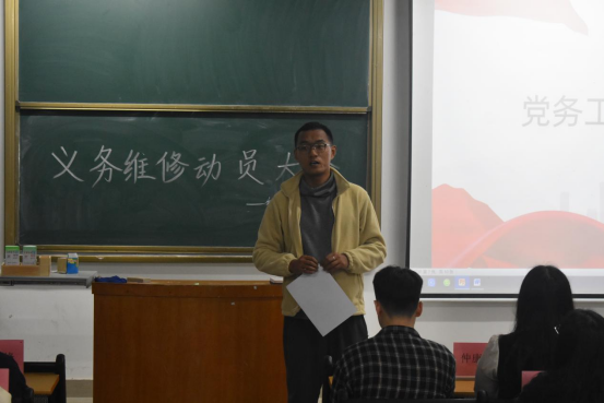 3月28日晚,为弘扬雷锋精神,发挥党员先锋模范作用,展现当代大学生的精神风貌,我院在13栋402召开党员义务维修动员大会。学院党总支组织员谢燕惠、团总支书记李顺、辅导员仲康佳老师、学生会主席团成员、党务工作组组长王启元,以及全体团总支·学生会成员、党务工作组成员参加本次会议。