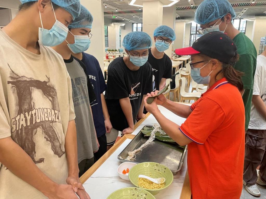 本次活动,谢燕惠老师讲解了端午节的由来,后勤的老师介绍了粽子的制作过程及方法:填米、放馅、裹叶、捆线、封口等。同学们在老师的讲解下,纷纷挽起袖子,开始了他们的“创作”。这次主题活动达到了预期目标,同学们不仅能够亲手制作出美味的粽子,更加深入了解了传统文化的内涵和精髓,增强文化自信和民族自豪感。
