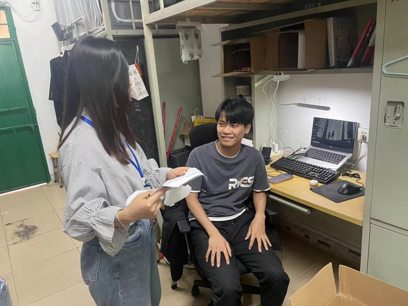 每到一间宿舍,辅导员们都着重强调宿舍用电安全、内务整理、防范诈骗等事宜,并与学生们就学业进展、未来规划、面临的困难做了深入交流。走访过程中老师们提出,希望同学们加强自我管理,警惕“网络陷阱”,提高防诈意识;落实安全用电的相关制度,保持整洁有序的宿舍环境,养成健康文明、积极向上的生活习惯,保持阳光开朗、乐于表达的良好心态。