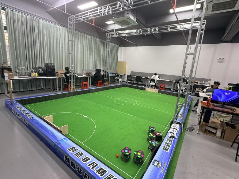 睿抗机器人足球竞技赛:以3V3全自动模式展开激烈角逐,机器人在精准代码的操控下,娴熟地完成传球、射门等动作。该项目吸引了50人次报名,呈现了一场场无需人工干预的“智能绿茵对决”。