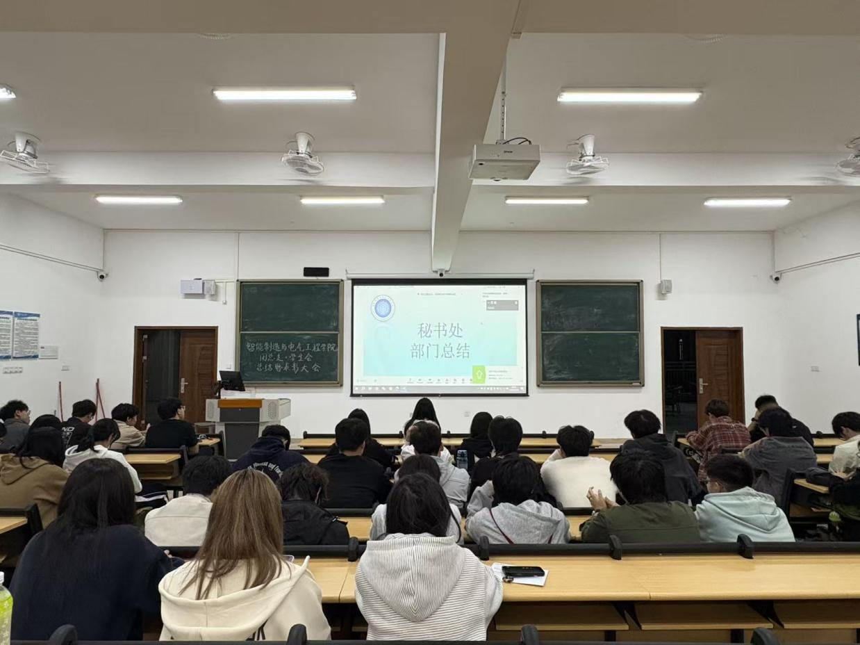 会议伊始,主持人播放了本学期团学工作总结视频,一张张活动照片、一个个服务瞬间,生动展现了各部门的工作轨迹。随后,各部门负责人依次上台作部门工作总结,复盘本学期工作:从十佳歌手比赛、演讲比赛等文体活动的落地,再到日常的学生权益维护、考勤统计等服务工作,各部门代表深度剖析了各自部门一学期以来工作中的短板,并展望下一学期的工作。