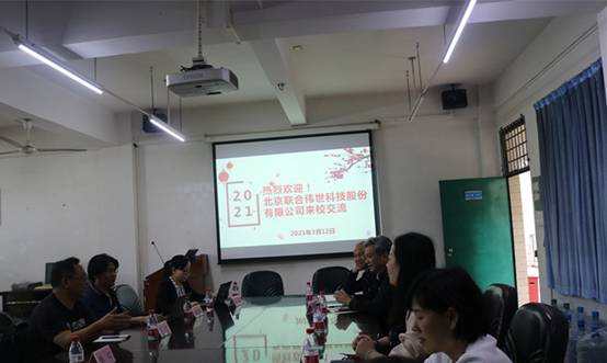 3月12日下午,北京联合伟世科技股份有限公司华南区经理张红、刘杰,销售经理汤万华等一行8人莅临我院洽谈校企合作,我院副院长陈吹信、孟遂民,党总支副书记吕在艳,教授姜新正,以及邓保青、黄德梅老师参加座谈。