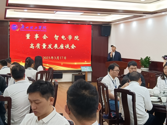 最后,黄家周董事长作了振奋人心的发言。他指出,2023年是我院提质培优、改革攻坚的关键年。通过学院“高质量发展”座谈讨论等活动的稳步推进,老师们干事创业的良好态势正在逐渐呈现。希望智电学院结合自身实际,深入贯彻落实学校的相关文件精神,使“构建新发展格局 推动高质量发展”在智电学院向纵深发展,落地落实教学科研、成果转化、专业建设、人才培养的改革创新,助推学院高质量发展。