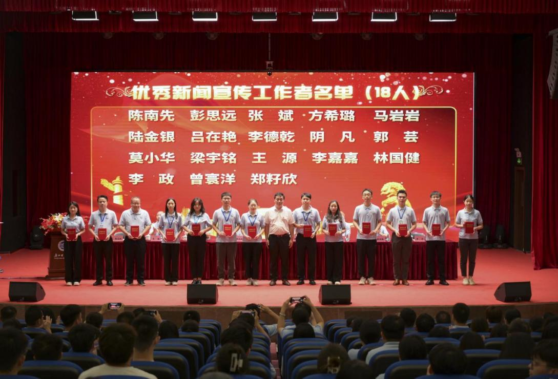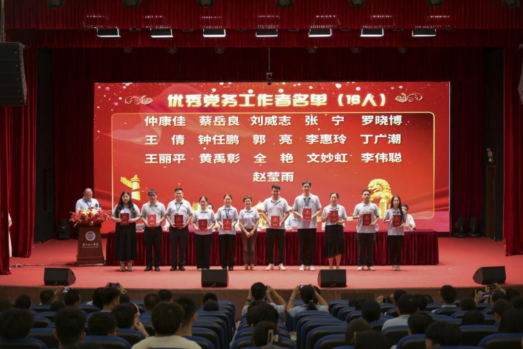 表彰大会上,我院学生第三党支部荣获“先进党支部”称号。在先进个人表彰中,学院党总支书记吕在艳同志荣获“优秀新闻宣传工作者”。陈玉莲、邓保青、王如意、谢燕惠四位教工党员荣获“优秀教工党员”。仲康佳老师荣获“优秀党务工作者”。学生党员郭颖琪和周仪正同学荣获“优秀学生共产党员”称号。