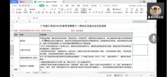 5月4日晚,为做好“五一”节后疫情防控工作,进一步强化学生遵规守纪意识,提高同学们的防控意识和应对能力,筑牢学生安全防范思想防线,保障师生生命安全和身体健康,我院召开线上疫情防控主题班会,各班班干主持会议。