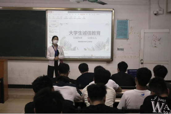 各班班长向大家阐释了诚信的内涵,即待人处事真诚、老实、讲信誉,言必信,行必果,一诺千金。接着,班长通过一系列的案例从个人、国家、企业三个层面介绍了诚信的作用道义,包含立人之本、齐家之道、交友之基、为政之法、经商之魂、心灵良药。然后,班长讲述了当前大学的诚信现状,有学术诚信、考试诚信、助贷诚信等等,并呼吁同学们提高自身修养,养成诚信品质。最后,班长向大家介绍了大学生诚信守则以及讲求诚信的重要性。