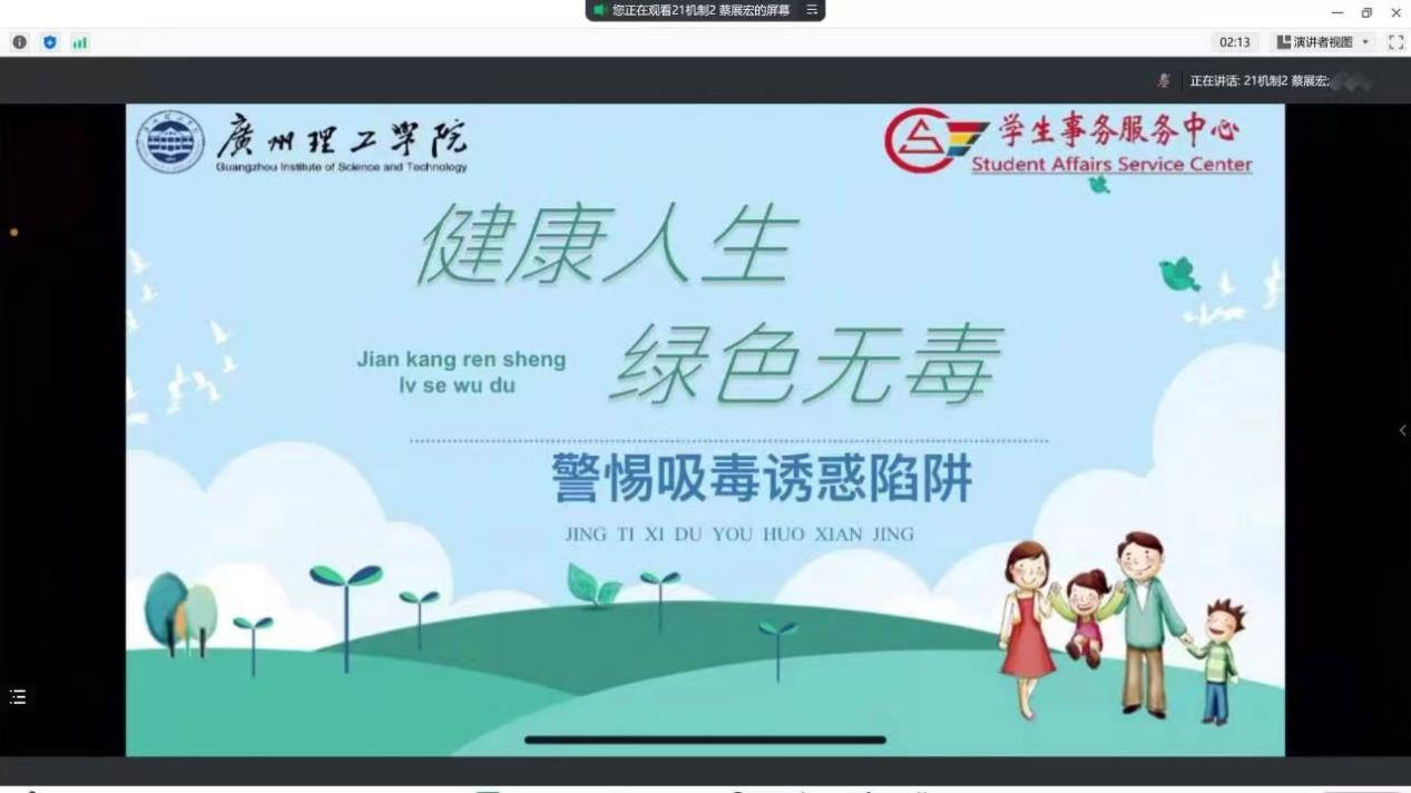 12月4日晚, 为进一步强化毒品预防教育,不断提升同学们的识毒、防毒、拒毒意识和能力,我院在线上召开“健康人生,绿色无毒”主题班会,班会由各班班长主持,全体学生参会。