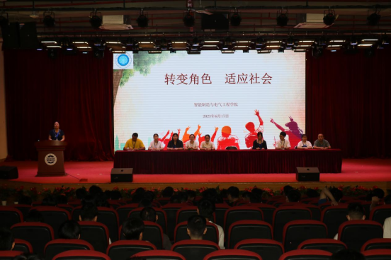 6月17日晚,KY开元集团召开“转变角色 适应社会”离校动员大会,院党总支书记吕在艳、全体辅导员老师、2023届毕业生参加会议,会议由石玲老师主持。