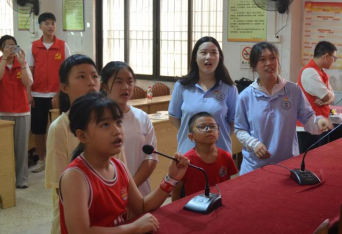 活动当天,实践队早早来到了狮山镇塘联村委,迎接他们的是一群热情洋溢的大朋友和小朋友们。活动开始,刘紫云老师先向村民们宣讲了普通话的重要性和推广普通话的意义,强调了普通话对于提高沟通能力、促进社会发展的重要作用。“典诵中华”读书行动中,叶智颖老师向村民们介绍了普通话的基本知识和正确发音方法,随后的绕口令比赛和朗诵比赛等一系列有趣的语言游戏相继展开,小朋友们踊跃参与竞赛,积极作答并得到许多奖品。通过这些互动,志愿者们帮助村民们纠正了一些常见的语音错误,让村民们在轻松愉快的氛围中提高了普通话水平,也提高孩子们规范使用国家通用语言的技巧和能力,极大激发了孩子们的学习热情。最后,师生志愿者们发起了“讲好普通话,沟通你我他”的倡议,呼吁大家多多进行推普活动,在保留粤语“乡音”的同时也积极使用普通话,写好中国字,以促进语言文字的沟通与交流。