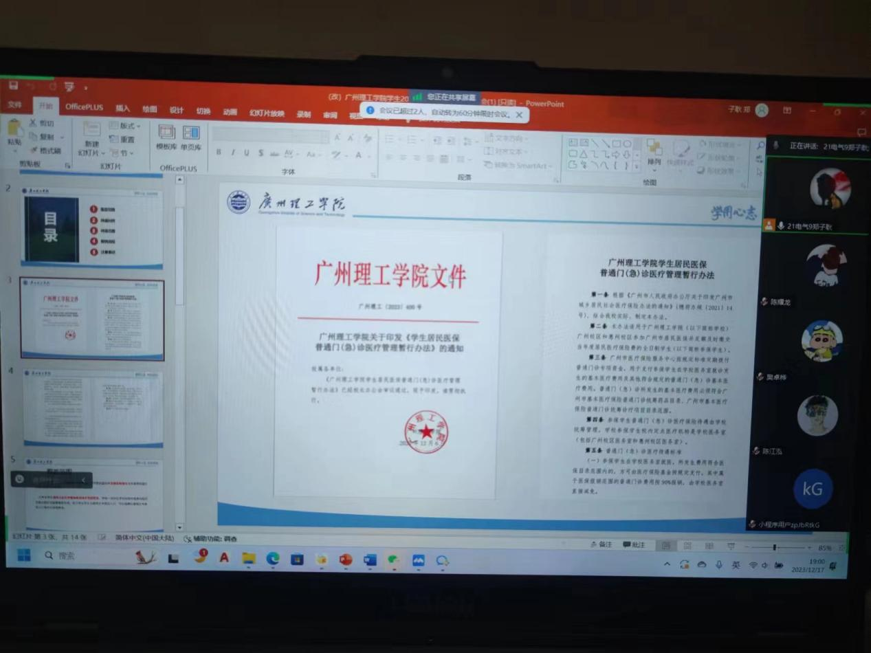 为增强同学们对医保的认识,提高参保意识,智电学院于12月17日在线开展了班级主题班会,各班班长担任主持人。