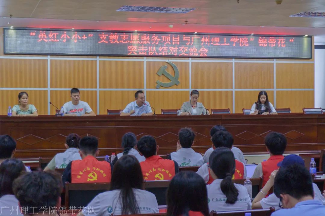 7月10日上午,“锦带花”突击实践队的队员们带着精心准备的教具、书籍和满腔的热情,怀揣着激动的心情踏入了这所充满期待的学校。简单休憩过后,17时,队员们前往英红镇政府参加了大学生英红义务支教项目对接交流会。出席本次会议的领导有团英德市委挂职副书记苏思慧、团英红镇委挂职副书记林李霞、英红中心小学副校长张廷毅等。会上,各负责人为参会志愿者们讲解了支教过程中的注意事项,并一一解答了志愿者们对于支教过程中存在的疑惑问题,为志愿者们后续开展支教活动提供了很大的支持与鼓励。