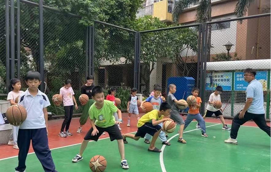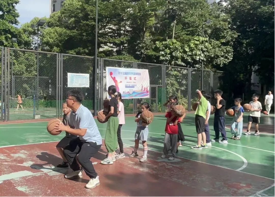 下午的课业辅导课后,实践团特别邀请了通识教育学院体育部专任教师党航来到新世界社区户外篮球场为社区少年们开展篮球教学课。上课开始,党老师带着小朋友们进行热身活动,有效激活身体体能,避免在运动中损伤。随后,老师开始教授小朋友们运球、投球的正确姿势与方法,并亲身示范标准动作,让孩子们听懂看懂。此时,孩子们已兴致昂然,一个一个排着队练习投球。通过一系列动作的指导练习,孩子们都有了不同程度的进步,收获了专属体育课的快乐。时间不知不觉过去,临近下课,小朋友们依然意犹未尽地练习投篮。随着哨声响起,孩子们依依不舍与党老师告别。本次户外篮球课,是理论与实践练习的结合,实践知识的讲解使学生们更好地掌握篮球知识,对篮球运动有初步认识;篮球练习则使学生们快速提升球感,养成扎实基本功,让孩子们感受到篮球运动的快乐与魅力。