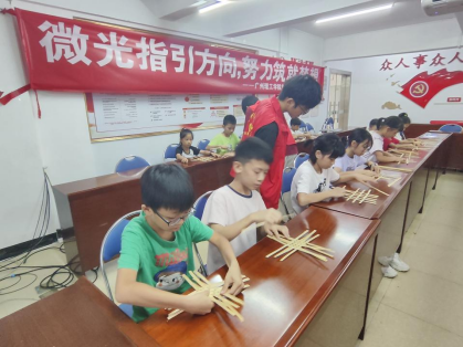 此外,结合传统文化教育,实践团引导学生们学习并亲手制作竹编工艺品,让他们亲身体验了中国非物质文化遗产的魅力。