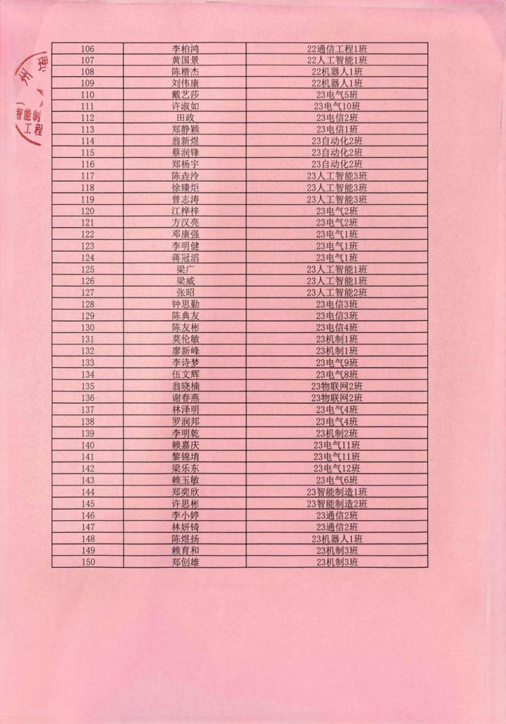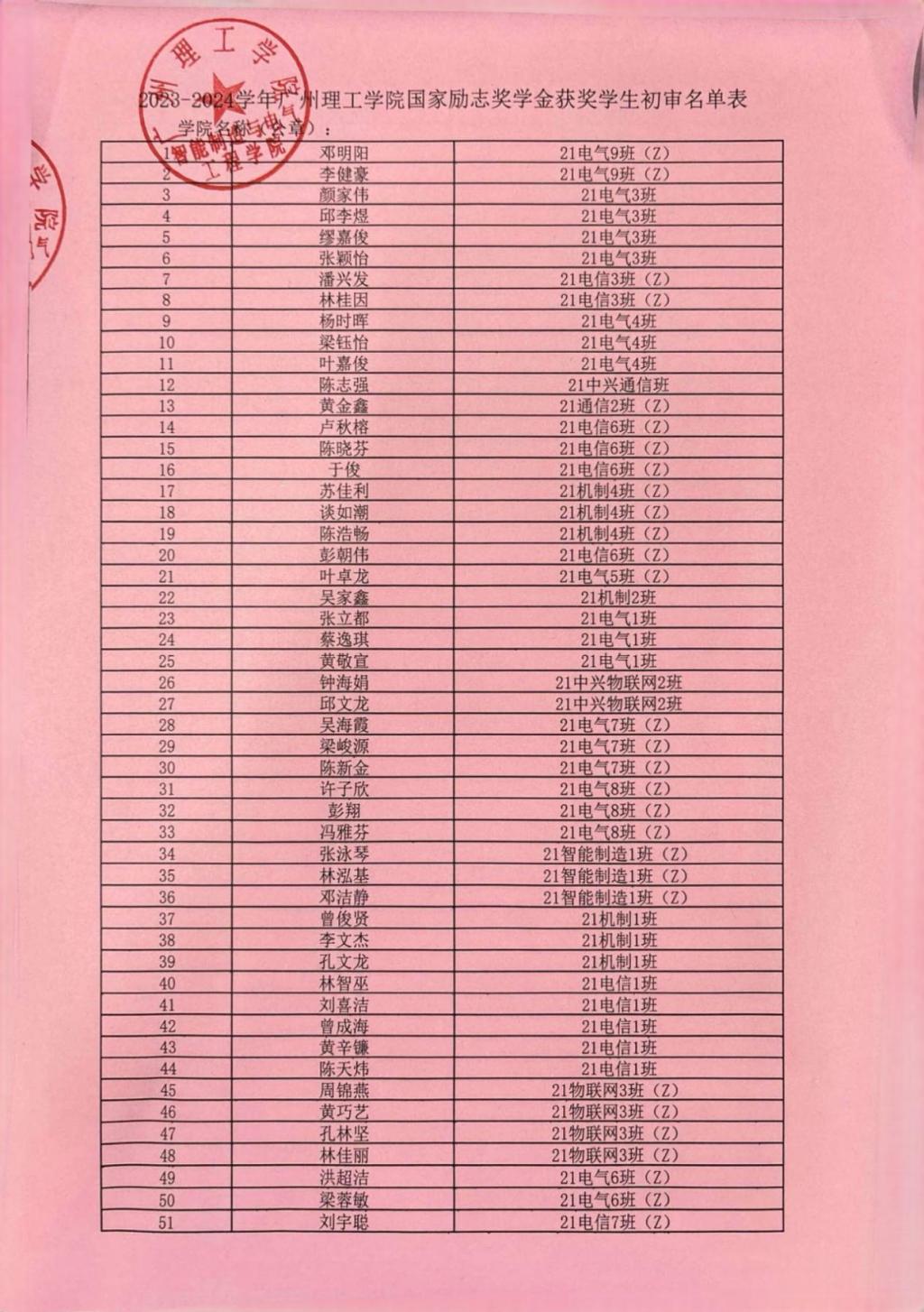 2023—2024学年国家励志奖学金名单