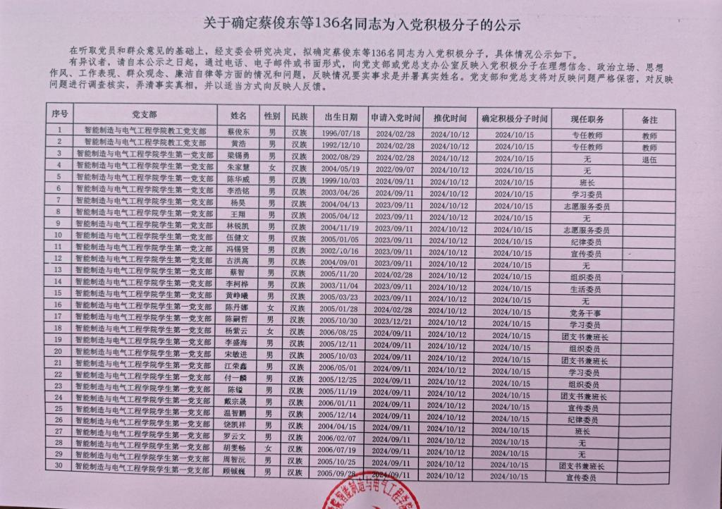 在听取党员和群众意见的基础上,经支委会研究决定,拟确定蔡俊东等136名同志为入党积极分子,具体情况公示如下。