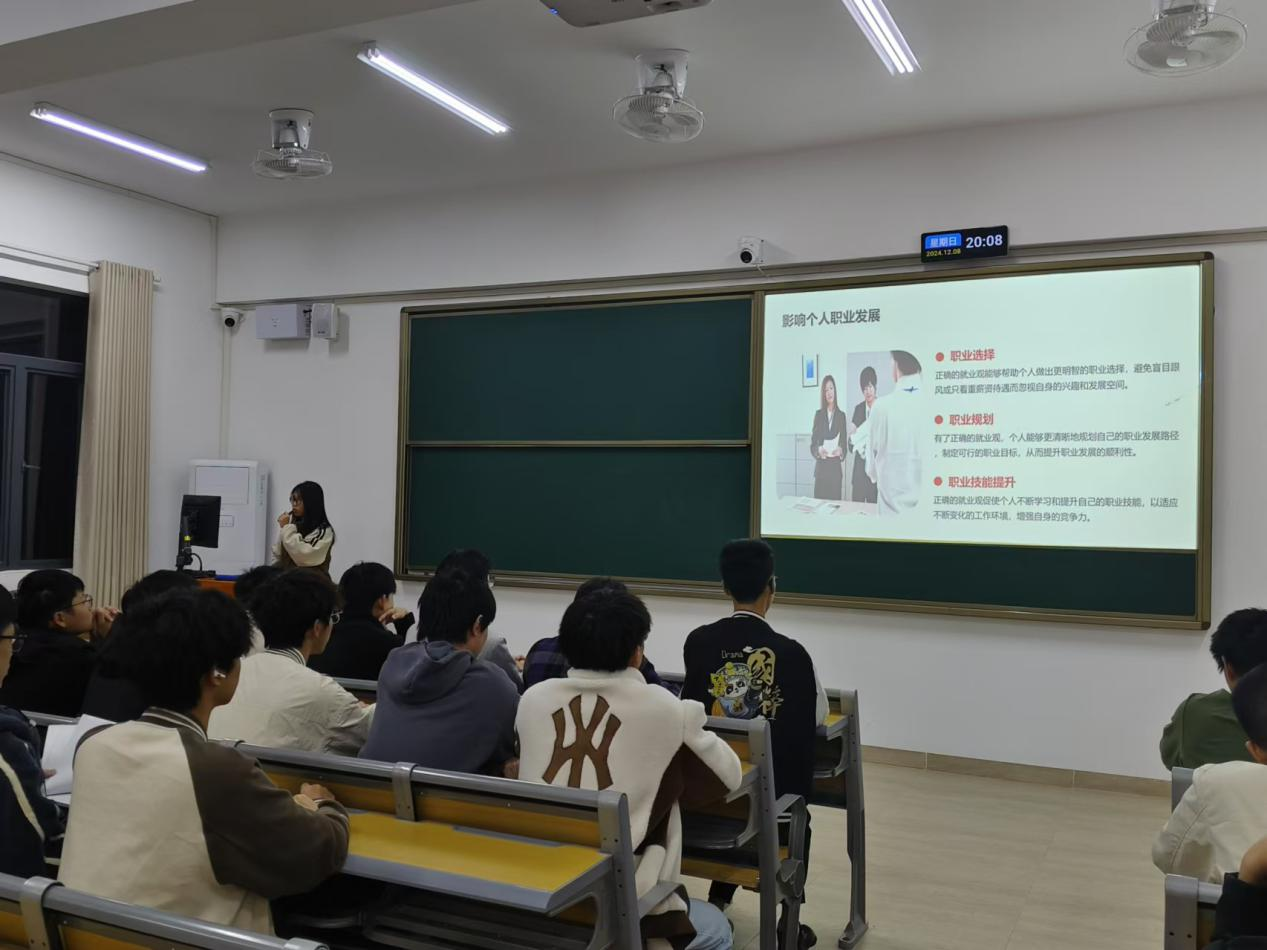 为进一步引导同学们树立正确的成才观、职业观和就业观,加深同学们对职业生涯规划的认知和理解,帮助青年学子更好地了解自己的兴趣和能力,12月8日晚,KY开元集团全体2024级同学在惠州校区教学楼召开“树立正确就业观”主题班会,班会由各班辅导员老师主持,团支书兼班长主讲。