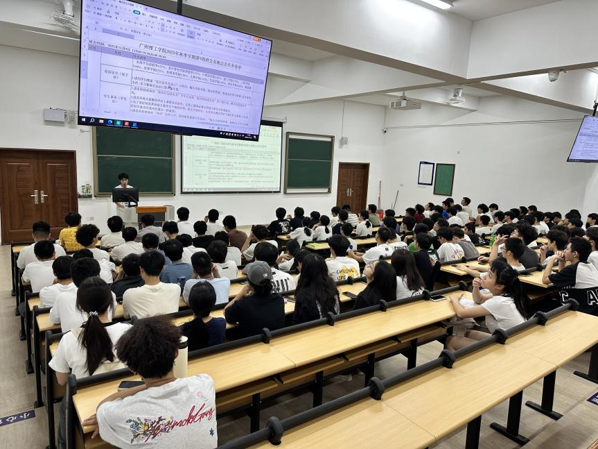 班会接近尾声,各班班长进行总结与倡议。班长们呼吁新生牢记讲解内容,严格遵守校纪校规与学院规定,主动践行学风建设倡议,在后续学习生活中严于律己、互帮互助,快速融入班集体,养成良好学习习惯与作息规律,以最佳状态迎接素质周挑战,争做文明、优秀的广理智电学子。