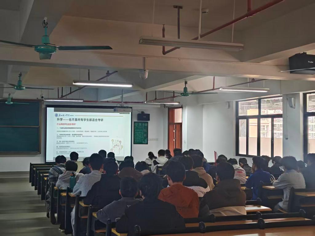 苏老师结合当前就业形势与考研趋势,从“职业认知”“目标设定”“路径选择”三大维度展开讲解。他深入分析了智能电网、电子信息等领域的行业前景,强调“技术革新背景下,学历提升与技能拓展是增强竞争力的关键”。针对学生关注的考研与就业选择问题,苏老师通过数据对比与案例分享,指导学生如何根据个人兴趣、专业基础及职业愿景制定科学规划,并详细解读了考研备考策略及求职准备要点。