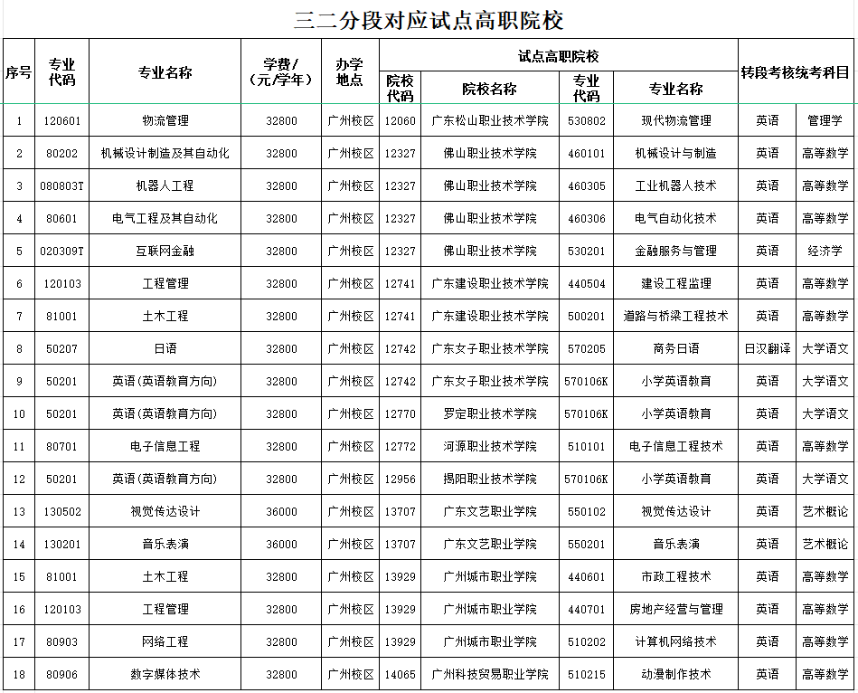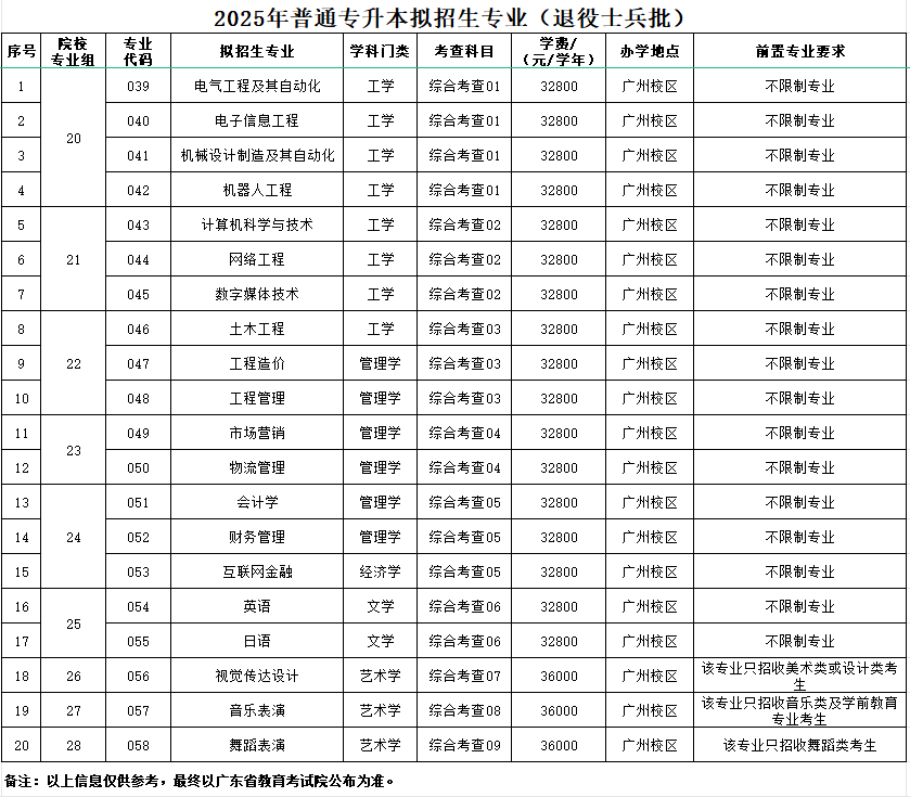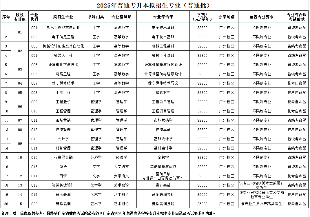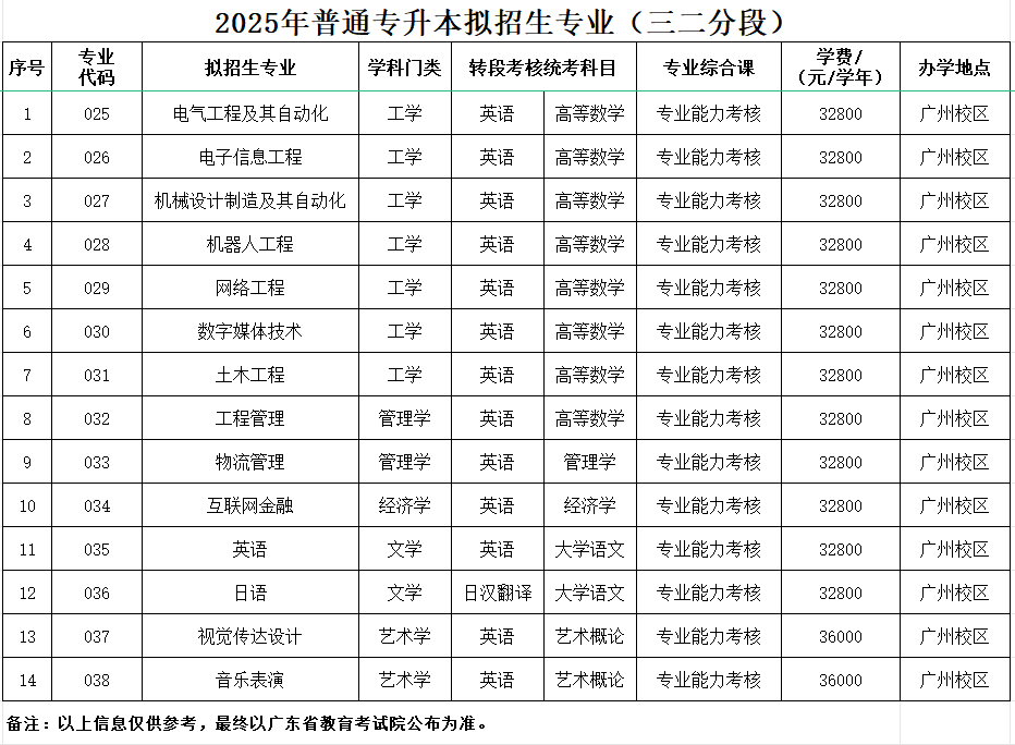 广州理工学院2025年普通专升本拟招生专业公布