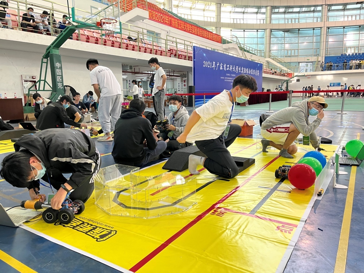 2021 年广东省工科大学生实验综合技能竞赛是广东省教育厅发文举办的面向全省本科院校(含独立学院)在校大学生的学科竞赛活动,广东省教育厅主办。比赛在位于湛江的岭南师范学院举行,共有全省320支队伍同台竞争,次比赛在延续传统的基础上进行升级,通过智能终端配送机器人、3D设计与制作、全地形越障排爆小车等项目形式呈现比赛项目。