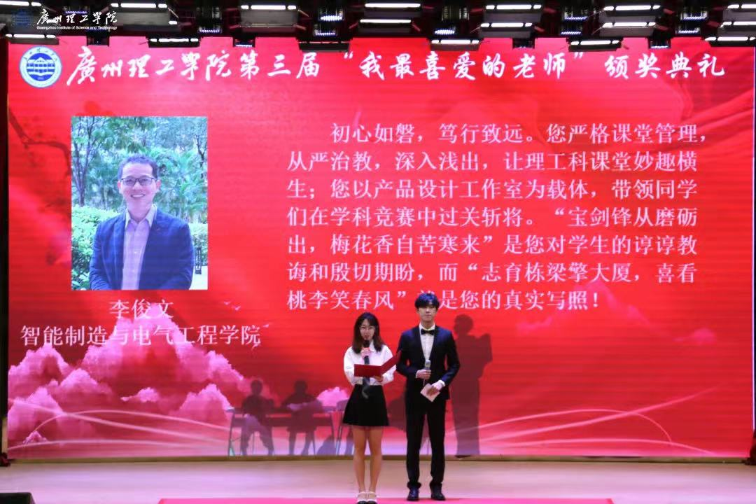 11月9日,广州理工学院第三届“我最喜爱的老师”颁奖典礼在一号学术报告厅举行。出席本次颁奖典礼的有校长胡社军,党委书记黄圣诚,常务副校长伏焕昌,党委副书记、副校长肖海,以及教师、学生代表。