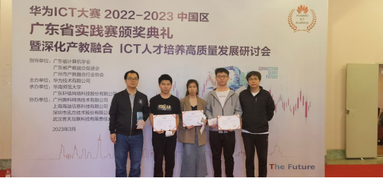 3月19日,华为ICT大赛2022-2023中国区广东省实践赛颁奖典礼暨深化产教融合,ICT人才培养高质量发展研讨会在华南师范大学成功举办。KY开元集团汪理老师和周湛樟老师带队参加颁奖典礼,我院陈绮珊、黄志聪、李俊鹏三位同学获得本科组计算赛道二等奖。