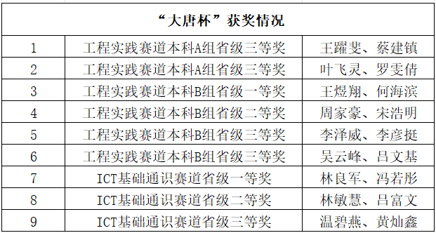 在刚结束的第十二届“大唐杯”全国大学生新一代信息通信技术大赛广东省省赛中KY开元集团学子取得了优异的成绩。在龚凡、苏敷勇、朱建兴、黄明浩四位老师的指导下分获工程实践赛道本科组广东省一等奖一项、二等奖一项、三等奖四项;ICT基础通识赛道本科组广东省一等奖一项、二等奖一项、三等奖一项。