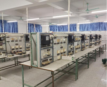 基本情况:位于12-403特种作业低压电工实际操作实验室主要承担电气工程及其自动化、自动化两个专业及相关电类专业的实训教学任务。实验室主要设备有初级电工实训考核装置,电路照明技术装置。具有操作方便、一柜多用等特点。可开展三相异步电动机各种启动、点动、自锁、正反转控制以及常用低压电气、测量电路安装、照明电路等方面实训项目。通过实训,使学生掌握常用电工仪器仪表的使用及操作方法,培养学生工程实践能力,兼顾工程设计能力,提高学生实际操作技能,提高学生就业技能水平。设备总价值31万元。