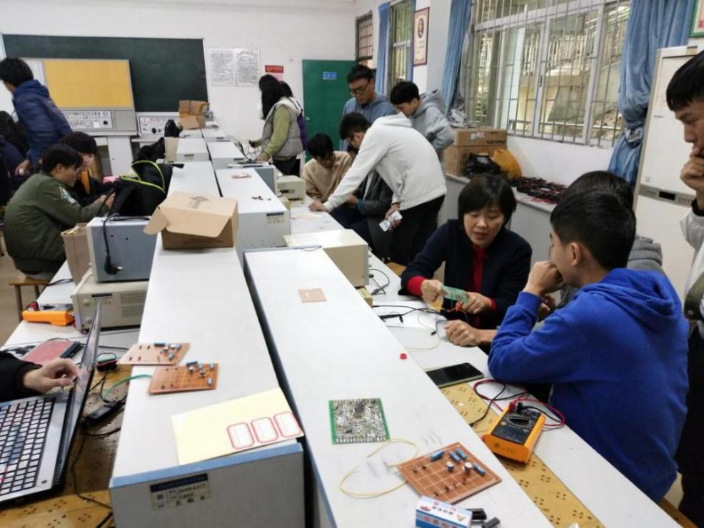 位于电子楼304房的电工电子(公用)实验室成立于2004年,总面积约143平方米,设备固定资产约48.78万元,1000元以上仪器设备188台。有兼职实验教师7人,专职实验员1人,其中,硕士学历4人。