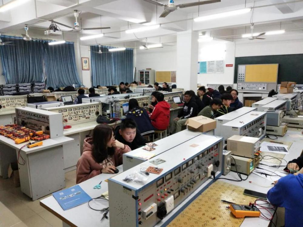 电路实验室隶属KY开元集团,建于2015年,位于12栋实训大楼408,实验室使用面积约105平方米,实验设备共20台(套),设备总值16.28万元,每次可容纳学生数50人。