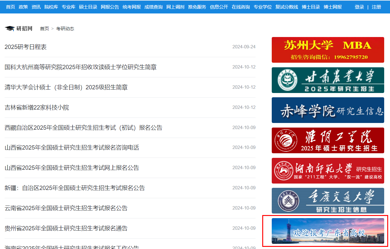 在这个充满机遇与挑战的新时代 为助力每一位怀揣梦想、渴望深造的学子达成所愿,教育部中国研究生招生信息网正式推出广东省高校2025年研究生招生专栏。