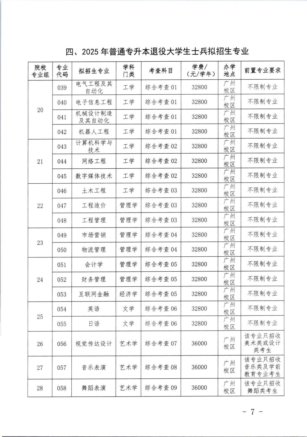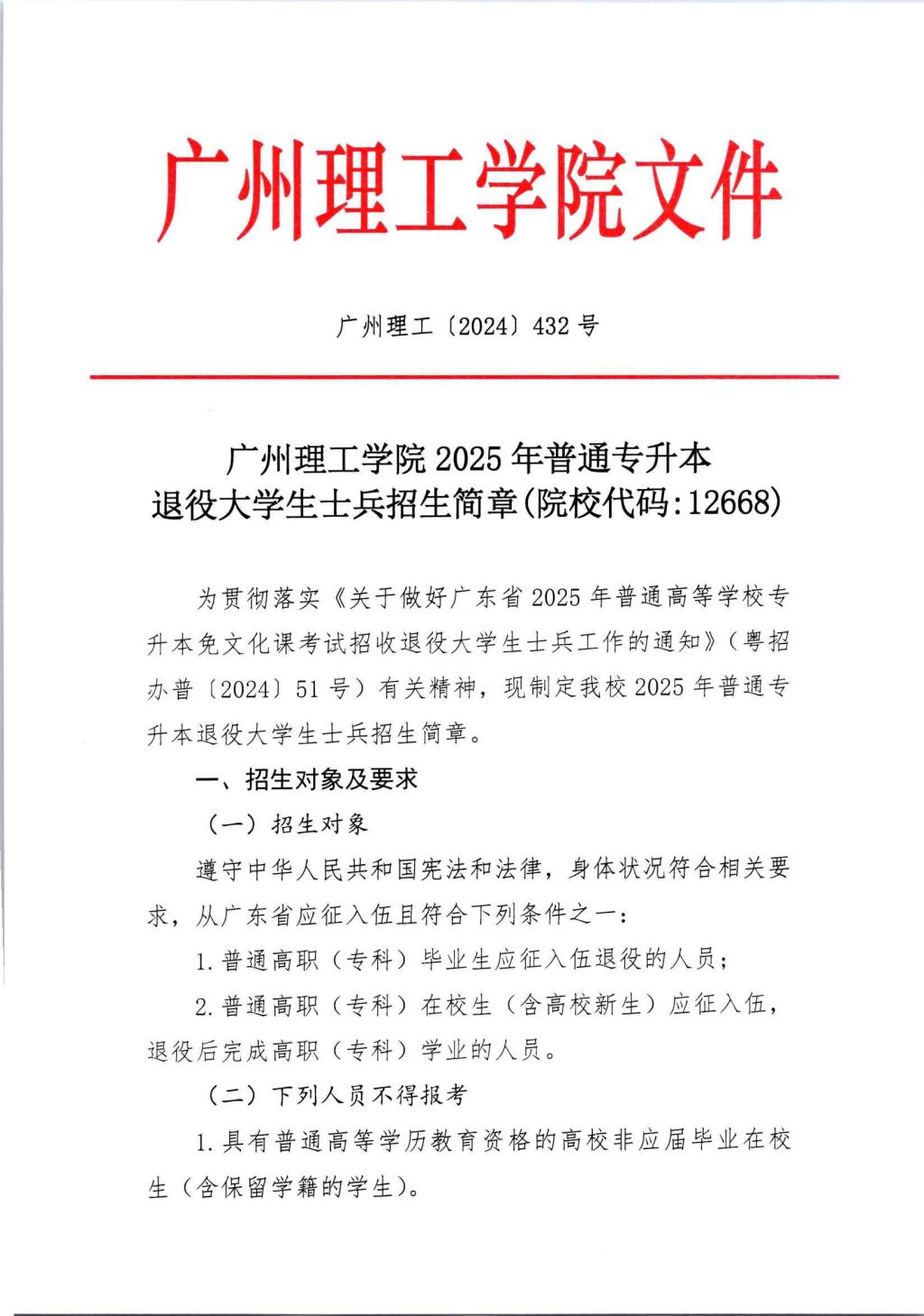 广州理工学院2025年普通专升本退役大学生士兵招生简章(院校代码:12668)