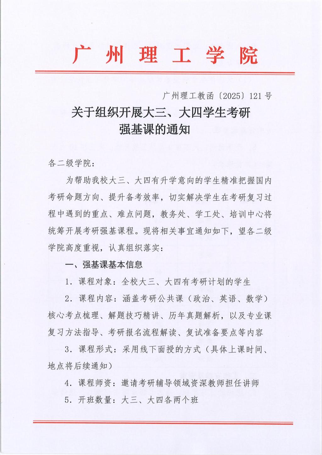 关于组织开展大三、大四学生考研强基课的通知