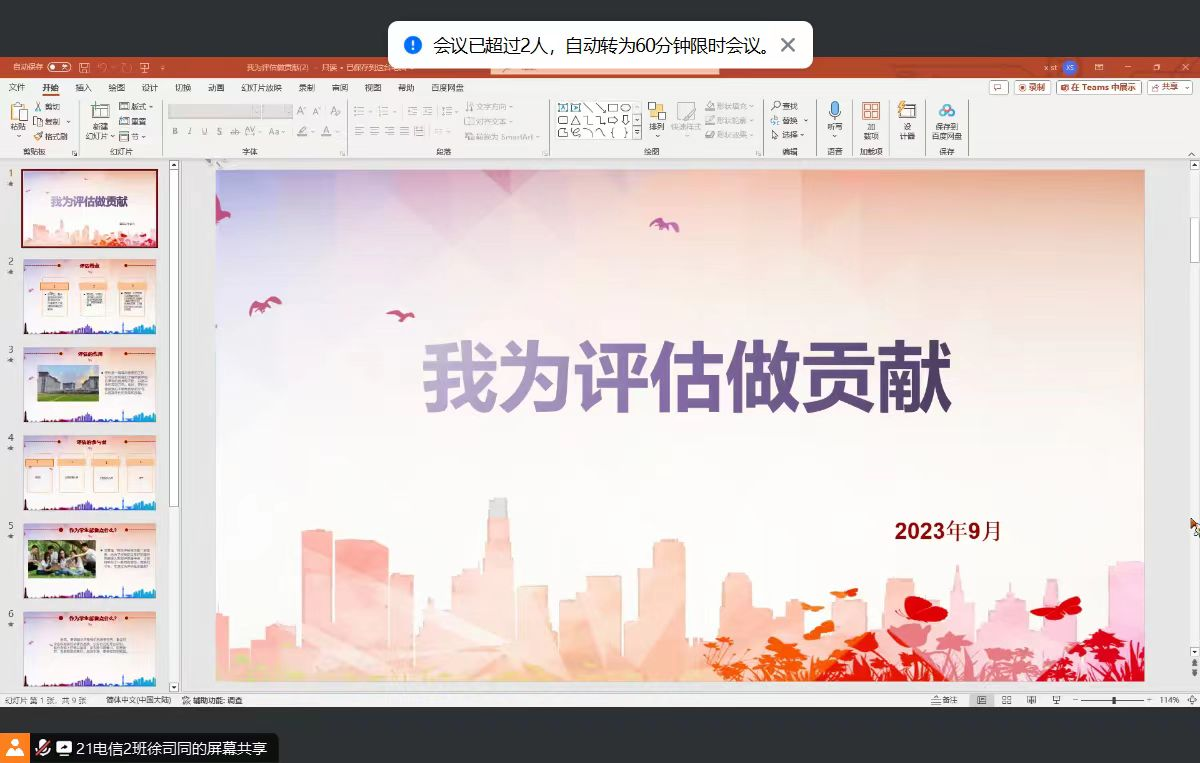智电学院于9月24日晚在线上召开了以“我为评估做贡献”为主题的班会。辅导员主持了班会,全体同学参会。