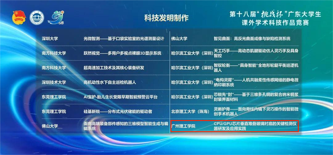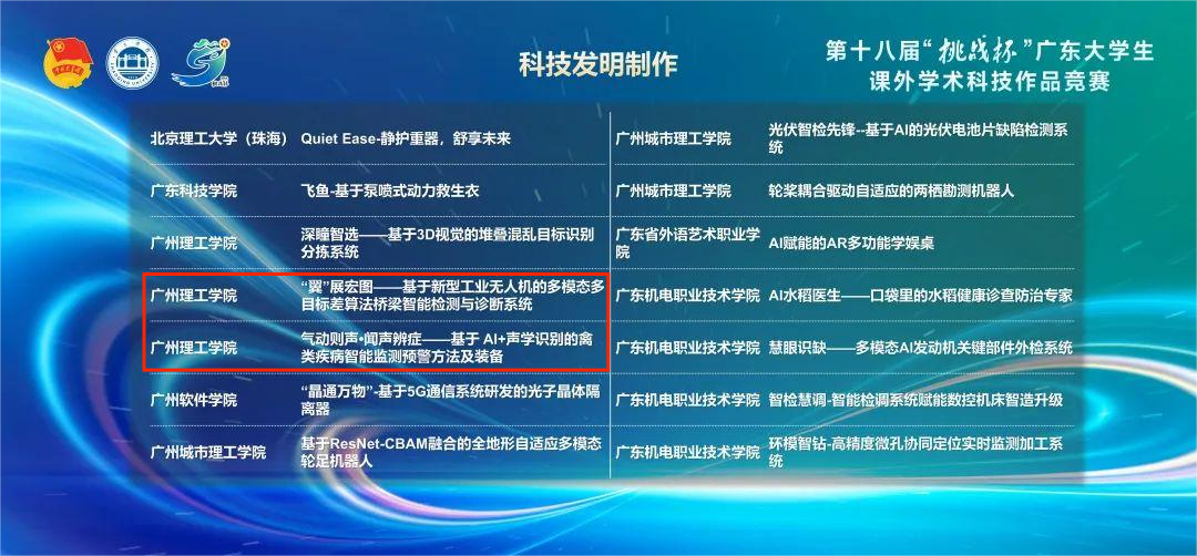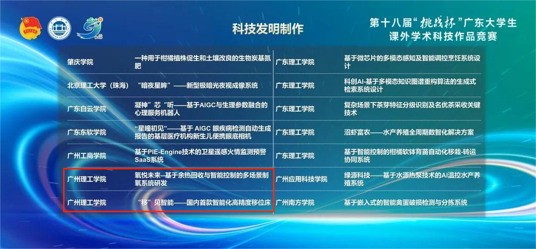 5月17日至19日,由共青团广东省委员会、广东省教育厅、广东省科学技术厅等单位联合主办的2025年“挑战杯”大学生课外学术科技作品竞赛终审决赛在肇庆市圆满落幕。广州理工学院KY开元集团师生团队共斩获7个奖项,其中特等奖1项、一等奖1项、二等奖3项、三等奖2项,充分展现了学院在科技创新领域的深厚底蕴与青春风采。