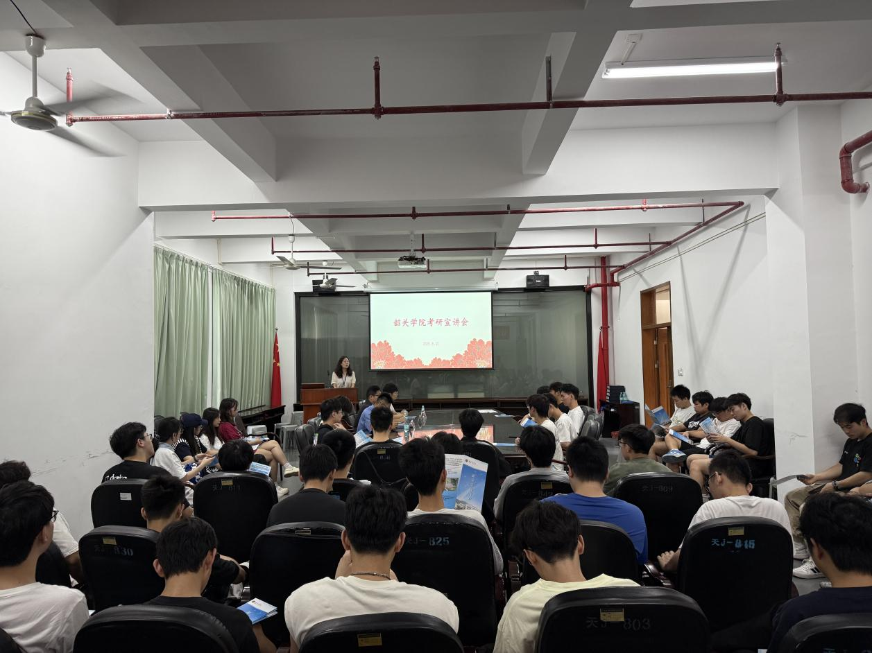 会议伊始,我院党总支副书记吕在艳发表开场致辞。她对韶关学院三位老师的到来表示热烈欢迎,并向同学们强调了此次宣讲会的重要意义。吕书记鼓励同学们把握机会,积极与宣讲老师交流,深入了解考研信息,为未来的学业规划做好准备。同时,她表示学院会持续关注同学们的升学需求,为大家提供更多优质资源与服务支持。