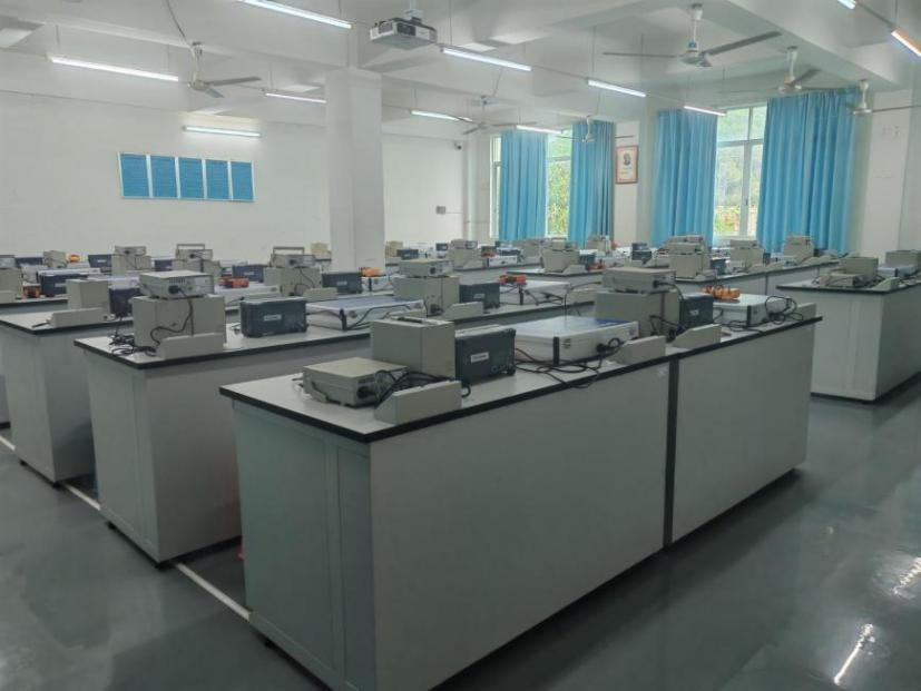 电路实验室建于2015年,主要面向电气工程及其自动化、电子信息工程、通信工程、物联网工程、机器人、智能制造专业,实验室使用面积约74平方米,实验台共20台。主要设备有DGJ-2电工技术实验装置,其中包含电路基础实验箱、交流电路实验系统、元件箱系统、单相智能功率、功率因数表、受控源、回转器、复阻抗变换器等配套挂件100件、数字示波器20台。主要承担《电路分析》《电工学》《电工电子技术基础》的实验教学。