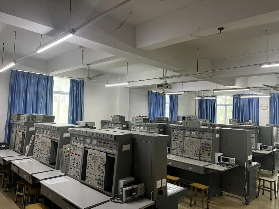 本实验室建于2012年,主要面向专业电气工程及其自动化和自动化专业,实验室使用面积约175平方米。主要设备:THLZD-2A电力系统综合自动化监控平台、THLZD-2A电力系统综合自动化实验平台、发电机组、三相可调负载箱和计算机等。主要承担课程实验包括电力系统分析实验、同步发电机起励实验、励磁调节器控制实验、自动准同期条件测试实验、发动机组的起动和运转实验等。