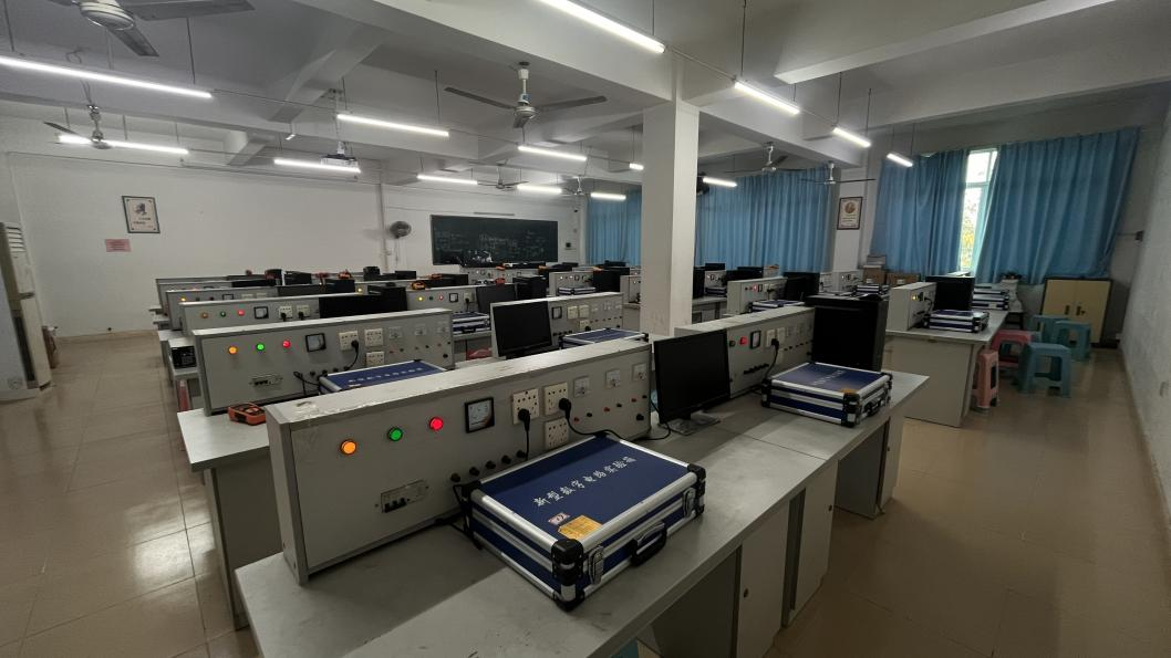 该中心2024年组建成立,目前主要实验室有电路实验室、电机控制实验室、继电保护实验室、变电站三维仿真实验室、电力电子实验室、单片机实验室、电工电子实验室、PLC西门子实验室、电工技能实验室等,在电力系统仿真、电力电子器件与智能控制、电工技能认证形成一定特色。主要设备有THLZD-2A电力系统综合自动化实验平台、数字电力电子及电气传动教学实验台、220kV仿真变电站仿真系统、NMEL-II型电机系统、可编程控制器实验装置、电工电子综合应用实验台等。全学年接纳28门课程的实验,1934学时。中心同时开展低压电工作业证以及电工技能等级证培训,其中低压电工作业证已进行17期,培训1200人次,1080学员取得低压电工作业证书。