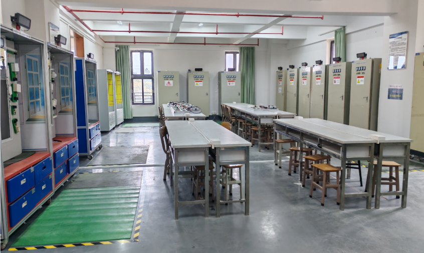本实验室建于2023年,主要面向电气工程及其自动化和自动化专业,实验室使用面积约119平方米,实验台32套。主要设备:THPFSM-2型可编程控制器综合实训装置、四层电梯实训模型、材料分拣实训模型、十字路口交通灯实训模型、计算机电脑等。主要承担实验课程包括直流电机、变压器、单三相异步电机、电机拖动、控制电机、工厂电器控制等。